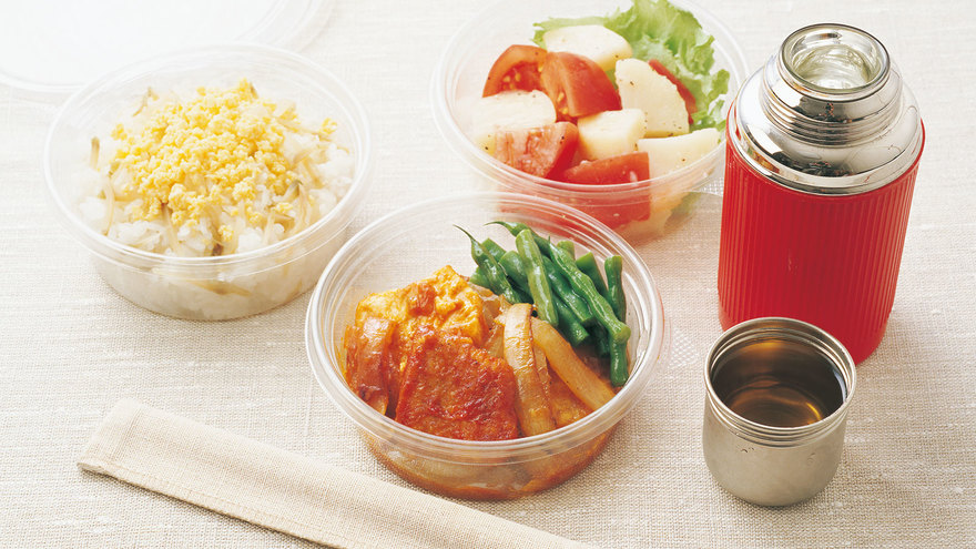 詰めるときはそれぞれ小分けに。市販総菜のケースは密封性が高いので、再利用するのもおすすめ。
