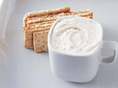 クリームチーズにハーブを加えた香り高いディップです。かちかちのクリームチーズもレンジならあっという間に柔らかくなりますよ。ただし、レンジのかけ過ぎには注意!