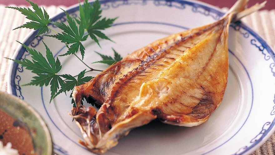 干物の定番「あじ」。基本の腹開きはほかの魚にも応用できます。ふっくらとした味わいは手づくりならでは。