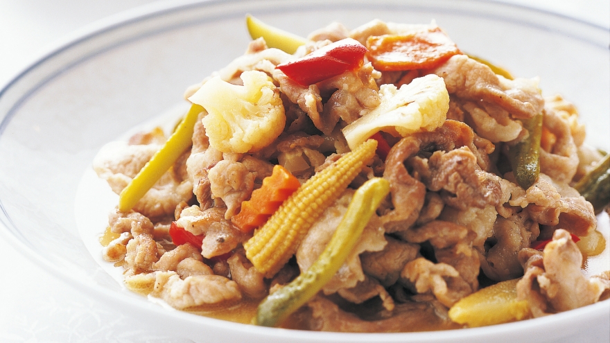 フライパンにサラダ油を熱し、1の豚肉を入れて色が変わるまで、強めの中火で炒める。ピクルスと【A】を加えて炒め合わせ、器に盛る。