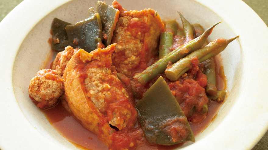 肉詰め厚揚げと昆布のトマト煮