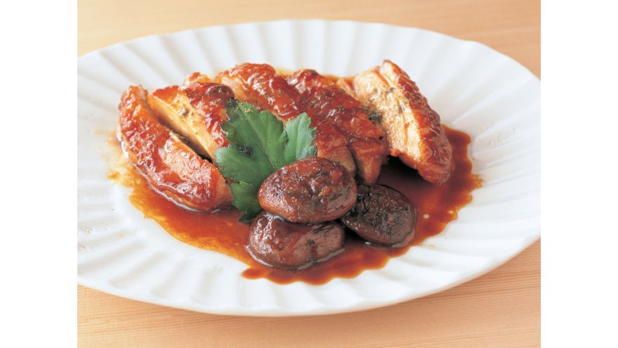 小麦粉を薄くまぶしたしいたけを加えて両面を軽く焼く。【合わせ地】を加え、汁けをからめる。煮詰まってきたらでき上がり。鶏肉を食べやすい幅に切って、しいたけとともに器に盛り、粉ざんしょうをふる。