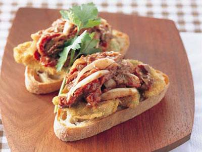 豆腐とアボカドが出会って、魅力的なディップソースが生まれました。たたきはわさびじょうゆ風味で、絶妙な和洋ミックスの味を楽しんで。
