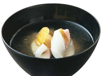滋味たっぷりのすり揚げだんごのお吸い物。れんこんは皮ごとすりおろします。精進料理では、おなじみの素材です。