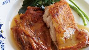 肉を柔らかくするのはちみつの効果で、ふっくらとジューシーな口当たりのチキンソテーです。オレンジのさわやかな風味も相まって、疲れた体をリフレッシュ!