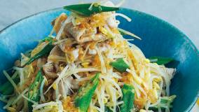 にんにく、しょうが、ねぎの香りが食欲をそそる、豆もやしどっさりの豚しやぶサラダ。野菜を無理なくたっぷり食べられます。