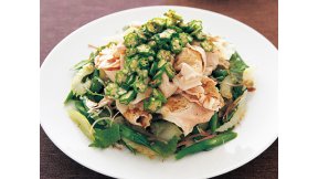 夏の定番おかず・冷しゃぶを、青とうがらしの辛みがきいた柚子こしょうだれでいただきます。