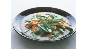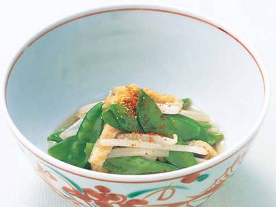 やさしい甘みの絹さやが、テーブルに春を届けます。アスパラガスやいんげんでつくってもおいしくいただけます。