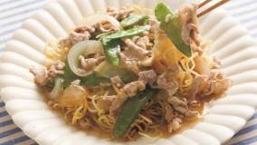 みずみずしい絹さやをもやしと煮れば、あっさり味のおかずのでき上がり。絹さやは強火で炒めておくと、煮てもパリッとした歯ごたえが残ります。