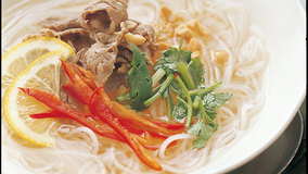 中国料理やエスニック料理でおなじみの米の麺「ビーフン」、ベトナムの平たい米の麺「フォー」。どちらも乾燥のものを水で戻して使用します。あっさりしたスープでいただくレシピが主流ですが、ピリ辛味もおすすめです。