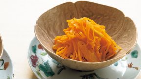 べっこう色のつぼ漬けは、横山家で人気のご飯のお供。カリカリとした歯ざわりの秘密は、天日に干して水分を抜くこと。冬の乾燥した空気が大根をおいしくしてくれます。