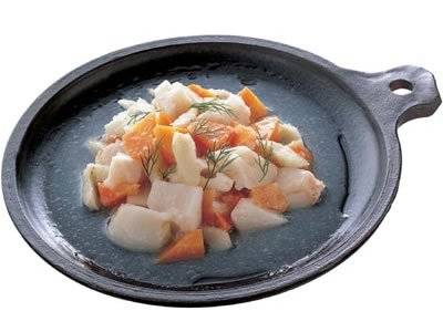 鶏肉はローズマリーの香りをまとい、しっとり柔らか。甘みの強い新たまねぎと合わせると、おいしいハーモニーが生まれます。レモンをきかせたマリネ液が全体のまとめ役です。