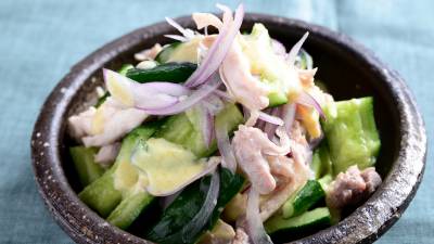 冬のみずみずしい白菜を、韓国のチョレギサラダ風の味つけでたっぷりいただきます。低温でゆでた豚肉は、しっとり、柔らかです。