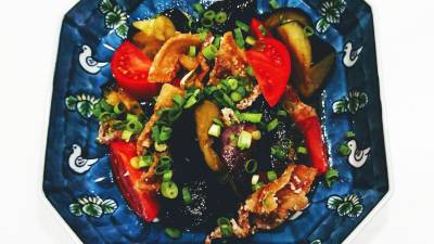 さつまいもにヨーグルトをまとわせて、おかずサラダに変身。塩ベースで甘みは少なく、セロリの食感もアクセントに。最後まで食べ飽きません。