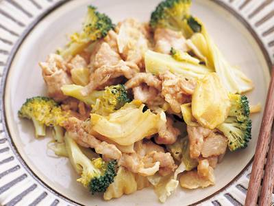 耐熱皿にキャベツを敷き、上に豚肉、ブロッコリー、にんにくをバランスよくのせ、【A】をよく混ぜて回しかける。