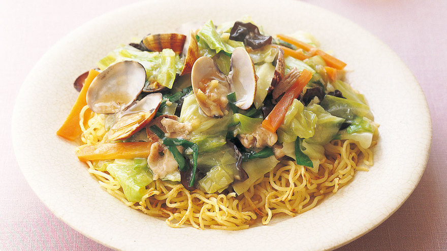 あさりや香味野菜を使ったうまみたっぷりのあんをかけ、塩分少なめに仕上げます。