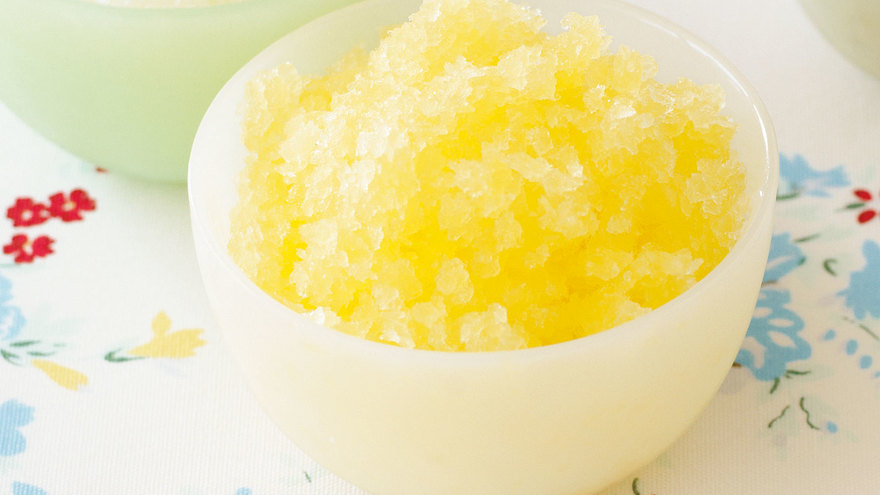 果汁とシロップを混ぜて凍らせただけの簡単シャーベット。フレッシュなフルーツの風味と食感が楽しめます。