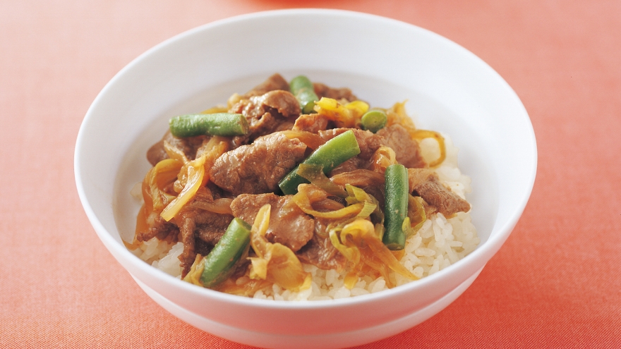 温めてご飯にのせるだけの冷凍丼の素。冷凍で肉も野菜も柔らかくなり、おいしさアップ。