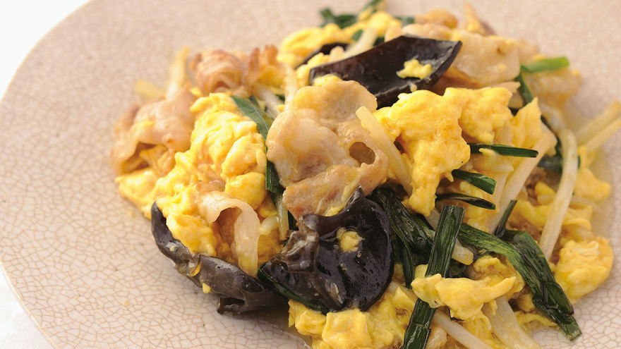 卵を金木犀(きんもくせい)の花に見立てたと言われる、中国の定番料理。フワッと仕上がるよう、大きく混ぜながら火を入れるのがコツです。