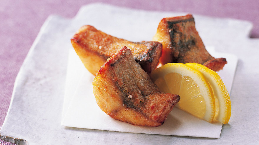 衣はサクッ、身はふっくらの竜田揚げ。しょうがとしょうゆの香りをつけて、低めの温度の油で揚げます。