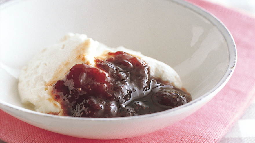 器にヨーグルトを等分に盛り、いちごジャムを大さじ1ずつかける