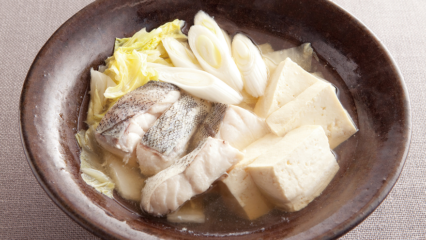 1の土鍋に、酒大さじ1を加えて中火で煮立て、白菜、ねぎ、たら、豆腐を加える。再び煮立ったら弱火にし、6~7分間煮る。たらの色が変わり、野菜がしんなりとしたら、ポン酢しょうゆを器に入れて添える。