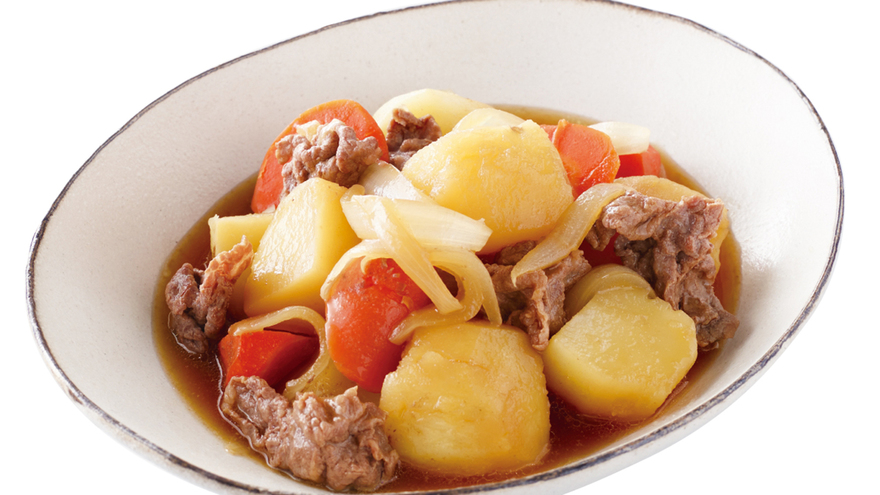 ほっくりと煮えたじゃがいもとバランスのよい味がおいしさのポイント。おいしくつくるには、水や調味料をしっかりと計量して入れることが大切です。