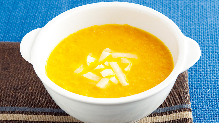 野菜はすりおろしてから煮るので早く火が通ります。トロリと溶けたチーズが、よく合うスープです。