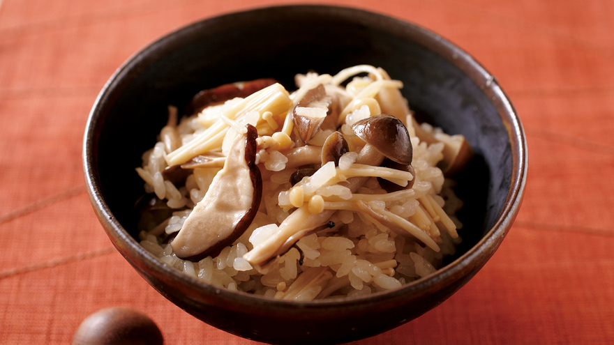 きのこの豊かな香りがフワッと広がる、秋らしい炊き込みご飯です。2~3種類のきのこを組み合わせると、味に深みが出ます。