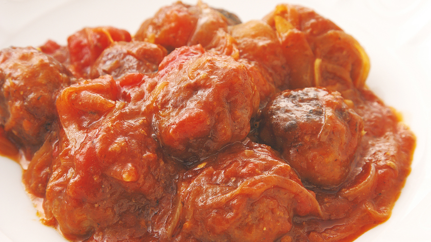 こんがりと焼いたミートボールはいったん取り出し、煮汁が煮詰まってから戻すと、ジューシーな仕上がりに。