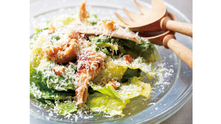 ほぐしたローストチキンと葉野菜を合わせて華やかなサラダに仕上げます。手づくりドレッシングで、満足度がグンとアップします。