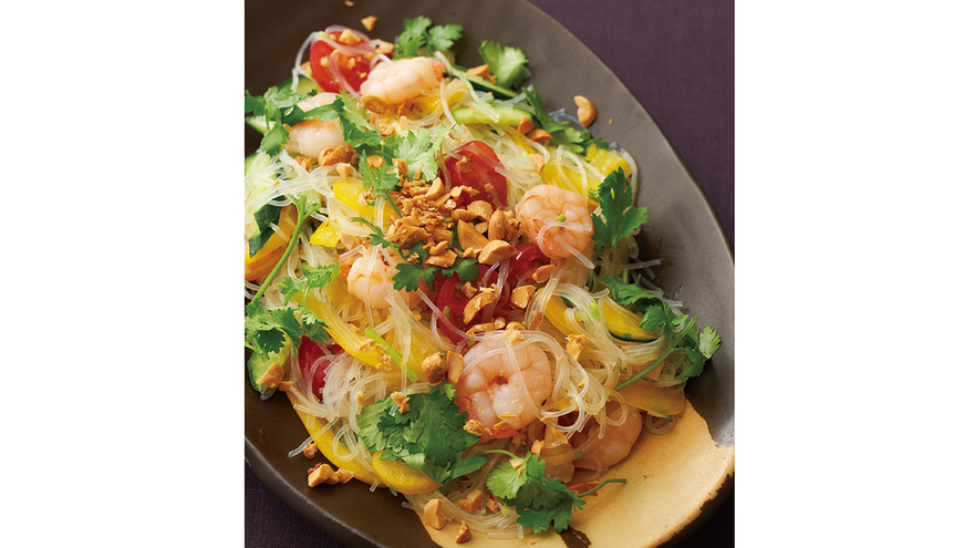 タイ料理でお馴染みの春雨サラダは、さっぱり味のドレッシングにピーナツがアクセント。日本人も食べやすい味付けです。