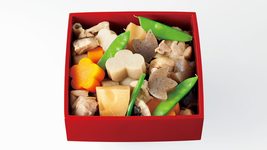 具材を1つの鍋で一緒に煮上げる、家庭向きの煮しめです。鶏肉は、野菜に火が通ってから加えると、パサつかず柔らかな煮上がりに。