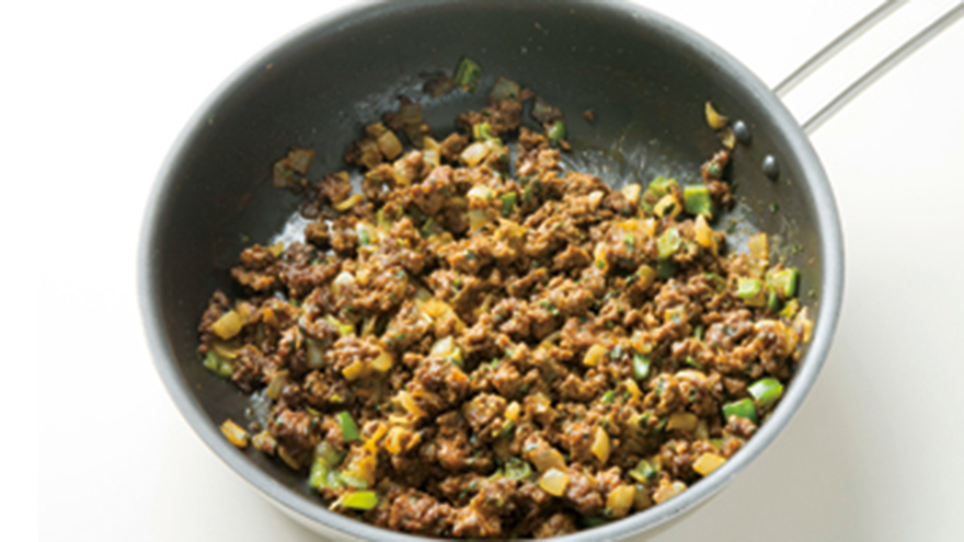 ひき肉はパラパラにせず、粗めにほぐしたほうが食べごたえが出ます。