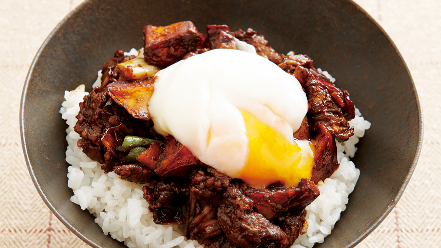 さつまいもと豚肉の甘辛炒めのアレンジレシピ。おかわり間違いなしのおいしさです。うどんやパスタにのせてもOK。