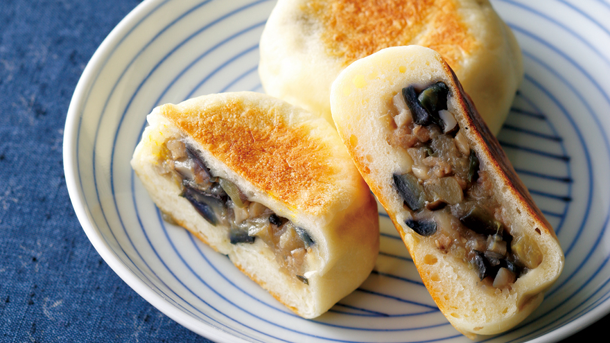 定番のなすに、きのこやひき肉のうまみと食感を加えて。じゃがいもは、つなぎの役目も果たします。ホットプレートは温度を管理しやすいので、おやきを低温でじっくり焼くのに最適。