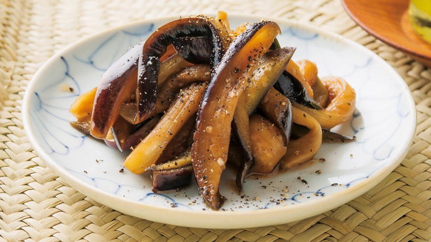 黒こしょうがピリッと味を引きしめ、甘酸っぱさが後を引く、塩分なしの変わり漬けです。味がのった出盛りのなすと黒砂糖が驚きの好相性。箸休めのおかずやお茶請けに重宝します。