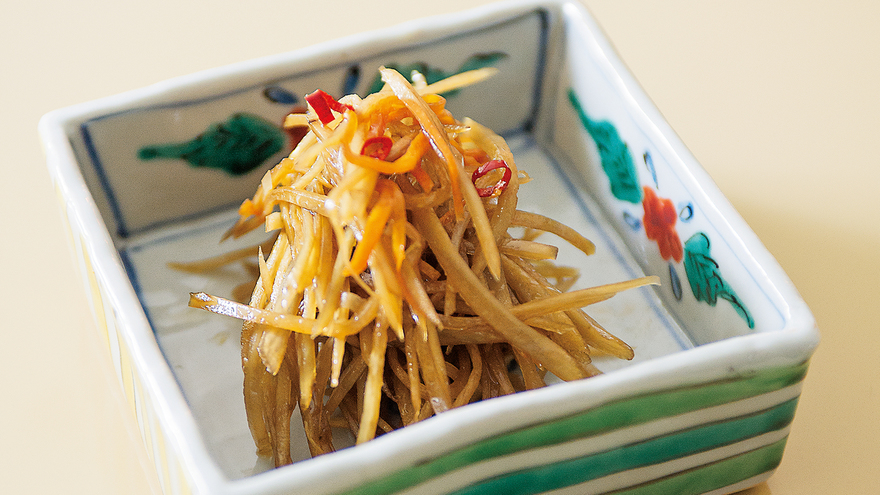 ごぼうやにんじんは、いつもより細く丁寧に切って繊細な口当たりにします。盛り付けにも気を配って、美しい仕上がりに。