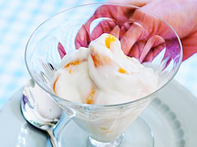 ドライマンゴーとヨーグルトを合わせるだけ。ヨーグルトの水分をマンゴーが吸ってマンゴーはしっとり、ヨーグルトはトロ~リと。それぞれの食感をグッとあげます!