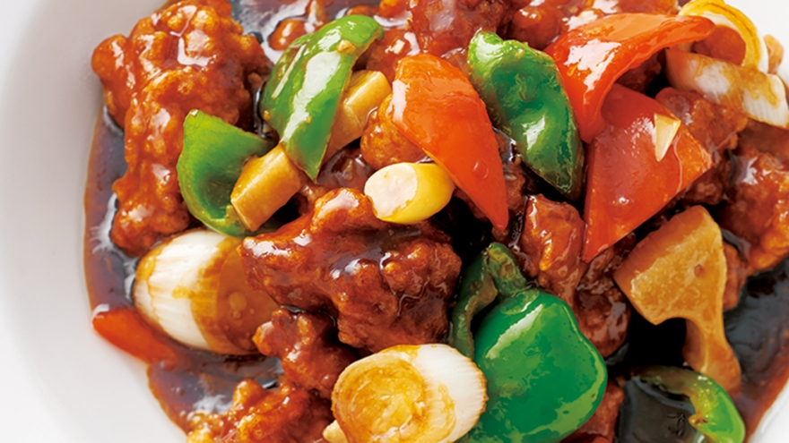 まろやかな酸味と香ばしさが特徴の中国黒酢を使った酢豚です。中国たまりじょうゆでさらにインパクトをアップ!