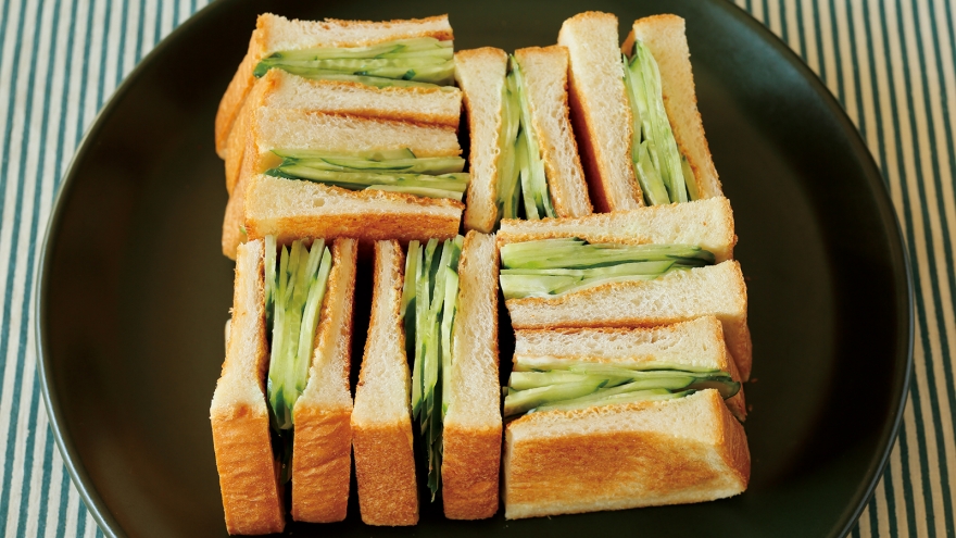 具は薄切りのきゅうりだけ。トーストした食パンではさめば、シンプルながらメリハリのある風味と食感が楽しめます。