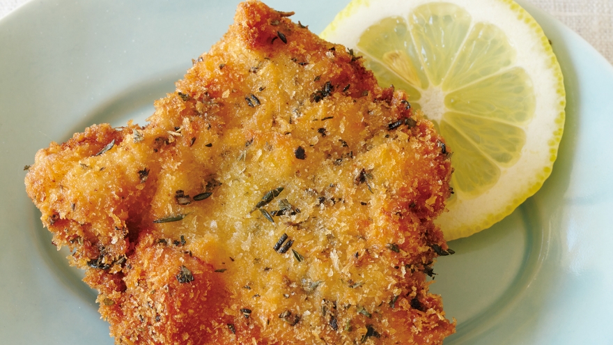 ハーブ入りのパン粉をまぶすのが決め手です。時間がたっても、香りが存分に楽しめます。