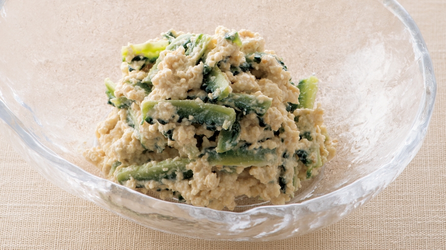 ゴーヤーは砂糖を合わせることで苦みがやわらぎます。豆腐はあまりなめらかにしすぎないほうが、ゴーヤーに負けない食べごたえに。