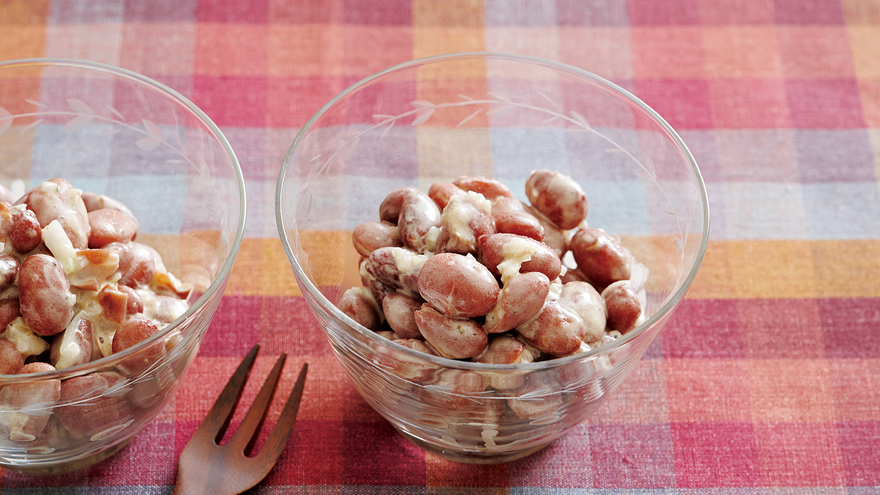 ゆでたての金時豆は、シンプルにあえるだけでおいしいサラダに変身します。豆が冷めるときにドレッシングがしみ込みます。