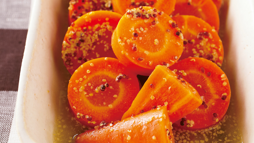 粒マスタードの酸味がにんじんの甘みとよく合う1品です。冷めてもおいしいので、作り置きして箸休めやおつまみに活躍してくれること間違いなし!