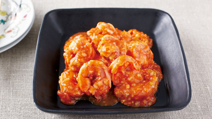 電子レンジでつくるえびチリは、えびがプリップリ!香味野菜の風味もマッチして、おもてなしにもピッタリな一品に。