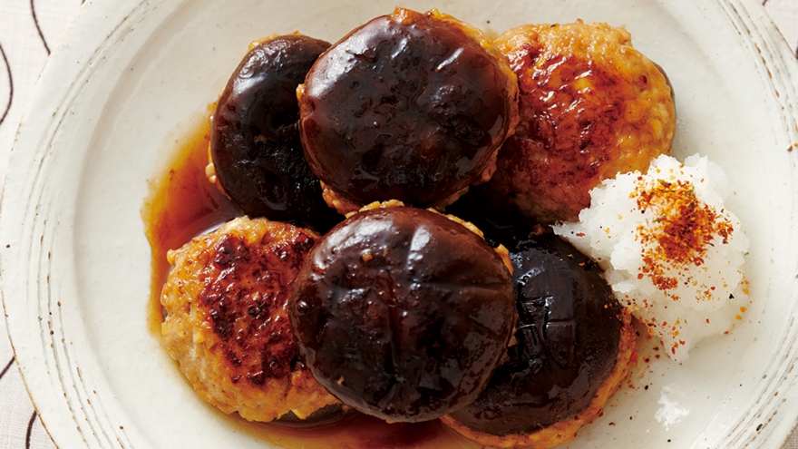 じっくり焼いたしいたけは、ジューシーで口当たりなめらかです。ひき肉のうまみと重なり合って、充実のおかずが完成!