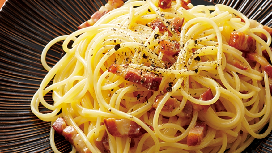 卵のまろやかなソースが魅力のスパゲッティです。ボウルで卵と混ぜると口当たりなめらかな仕上がりに。
