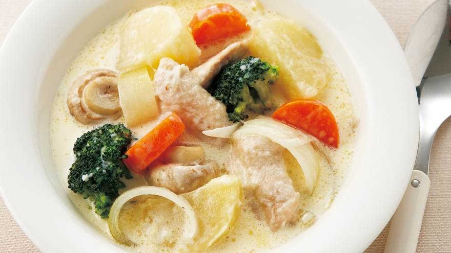 一皿で満足できるおかずスープの定番、シチュー。ルーを使わず、生クリームで仕上げるのでサラリとした口当たりです。