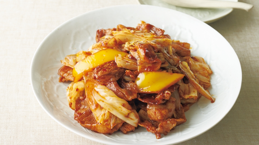 甜麺醤と豆板醤のふうみが食欲をそそる炒め物です。豚肉も野菜も炒める前にゆでておくのがポイントです。